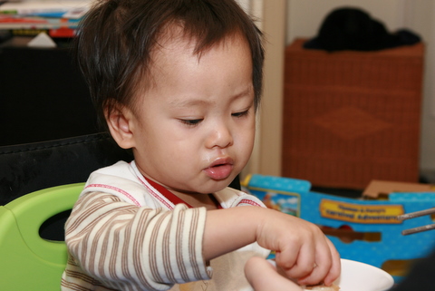 小P:媽媽妳餵太慢,我自己動手比較快。