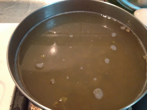 這時不能久滾,有回煮到忘記擱著去作別的事情,回過神來已經殼肉分離了,滾一陣子後試吃看看綠豆軟熟即可關火。