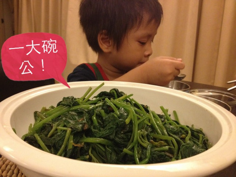 燙好的地瓜葉拌上自製豬油葱真是美味呢,三大把的地瓜葉煮了一大碗公在我們家也是一餐就吃光了。