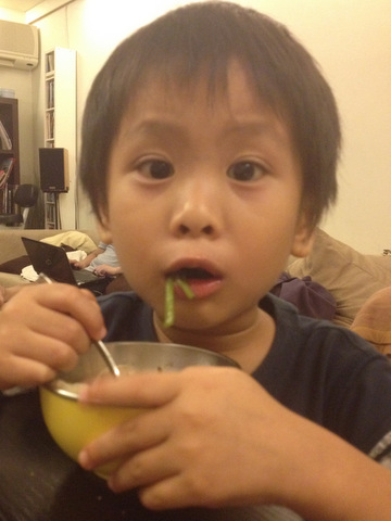不太挑食的小P,地瓜葉可是大口大口地吃呢。