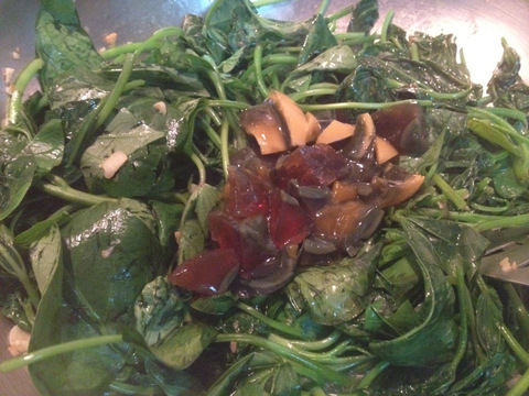 待地瓜葉煮軟即可盛盤。食譜還有在起鍋前淋上少許米酒,不過我沒放一樣好滋味。