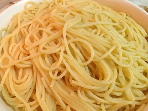 煮好的義大利麵撈起時可再拌入少許橄欖油避免結團。