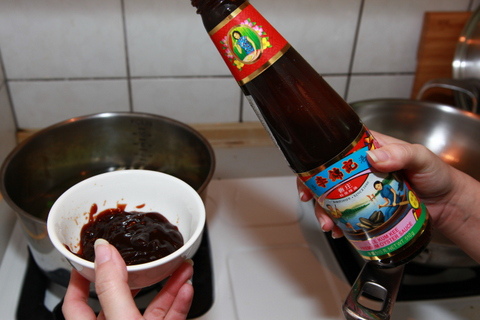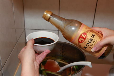 調好的滷汁,可以先試一下味道,若不夠鹹不夠甜可以再酙量增加醬油或蠔油,因為今天是要放電鍋滷,水份並不會因此減少,所以味道可以放足一點,若是用瓦斯爐,基本上醬油與蠔油合計約一碗應該足夠,用瓦斯爐烹煮水份會變少味道變鹹,一開始不要下手太重之後可以再慢慢調整。
