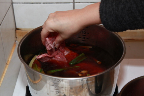 大約一個小時又四十分鐘後電鍋跳起,不可以掀鍋蓋,取消保溫,直接悶著八小時以上讓牛肉熟成漸漸冷卻,牛肉經過浸泡的程序變得更入味軟嫩。