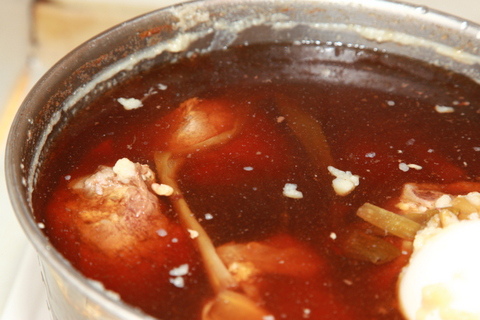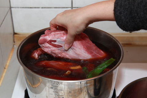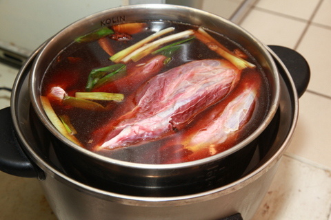 放入電鍋,外鍋放五杯水,約煮一小時四十分鐘。