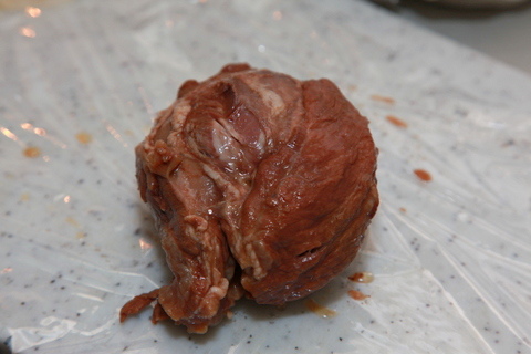第二天一早,來不及處理打包,就把整鍋已冷卻的牛肉先放到冰箱去了,晚上回家才來切。
