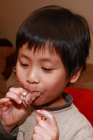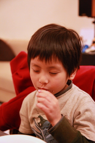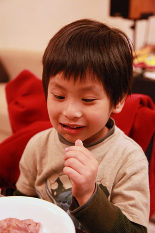 還在廚房切盤就有個小人聞香而來伸長了手一直討吃,一整個迫不及待。
