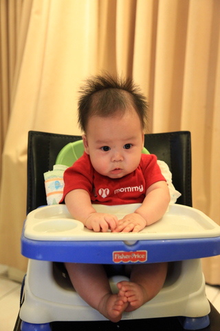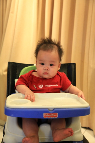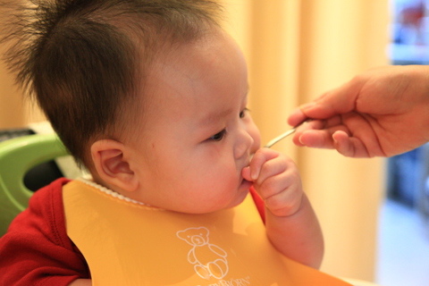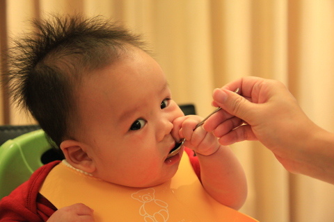 小二到目前為止仍是全母乳哺餵,可是爸媽又是過敏體質,既然這樣,那就折衷從五個月開始吃吧。