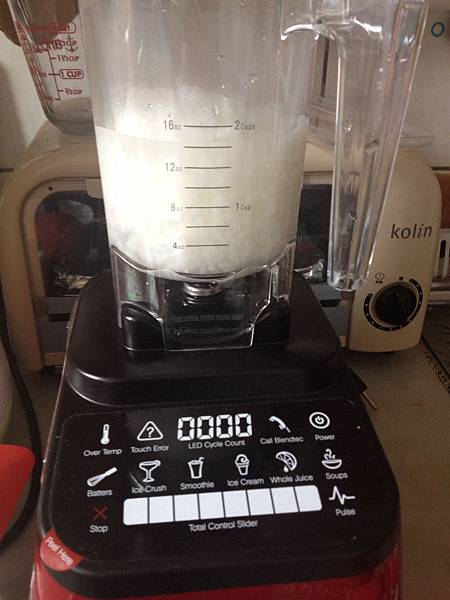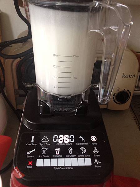 新玩具Blendtec,特地買了小杯,小二的副食品就靠你啦~按下smootie,三十秒不到就打好了。