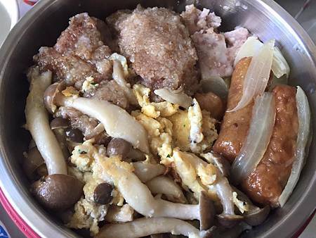 前一晚先醃好排骨並且沾上蒸肉粉墊上芋頭放在冰箱備用,早上起床第一件事就是把排骨放到電鍋,外鍋兩杯水按下開關,等炒好雙菇炒蛋和洋葱甜不辣,芋頭粉蒸排骨也好了。