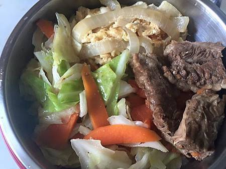 第五週,紅燒牛腩是之前多做的冷凍幾份起來,前一晚退冰,早上只要加熱,幾樣菜都是小P的最愛,這天把便當吃光光了,回家還一直讚嘆牛肉好好吃洋葱炒蛋好甜高麗菜也好吃,看著他笑兮兮的臉,早上少睡的時間好值得。